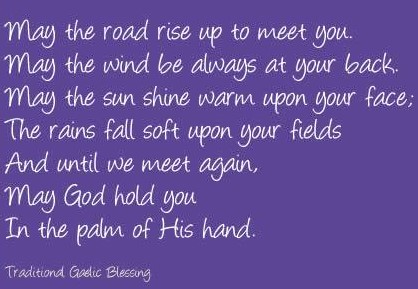 It’s a been branded as an old Gaelic blessing when really it was written by an American minister was not Irish who acknowledges that he just threw together a bunch of Irish blessings he had heard before. He apparently didn’t know that Go n-éirí an bóthar leat,” means something along the lines of wishing someone a good journey or success, but translates literally into “may the road rise with you.”
