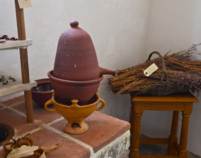 In medieval times, households of the wealthy classes had small distillation apparatuses made of various materials to make medicines and perfumes for their home use. Not everyone who made distillates owned a still. Here you can see directions from a French manuscript for making rosewater without an alembic from 1393.2
