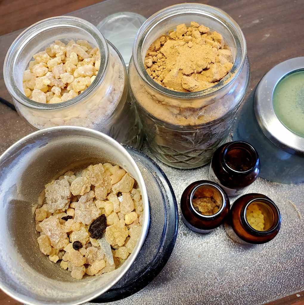 I use them often although I try to substitute local resins such as pine, spruce, or the resin of cottonwood buds when that substitution makes sense. But oftentimes I have found that they don’t work interchangeably, and I so use gums and resins that are sourced from far away — mastic, gum arabic, benzoin Boswellia, myrrh, and amber.