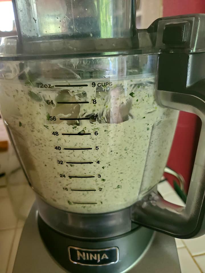 Pound the plant material with your fat until the green juice has completely colored the fat green. You can do this by hand if you are dedicated to recreation, but I strongly suggest letting Sir Food of Processor do this task for you.