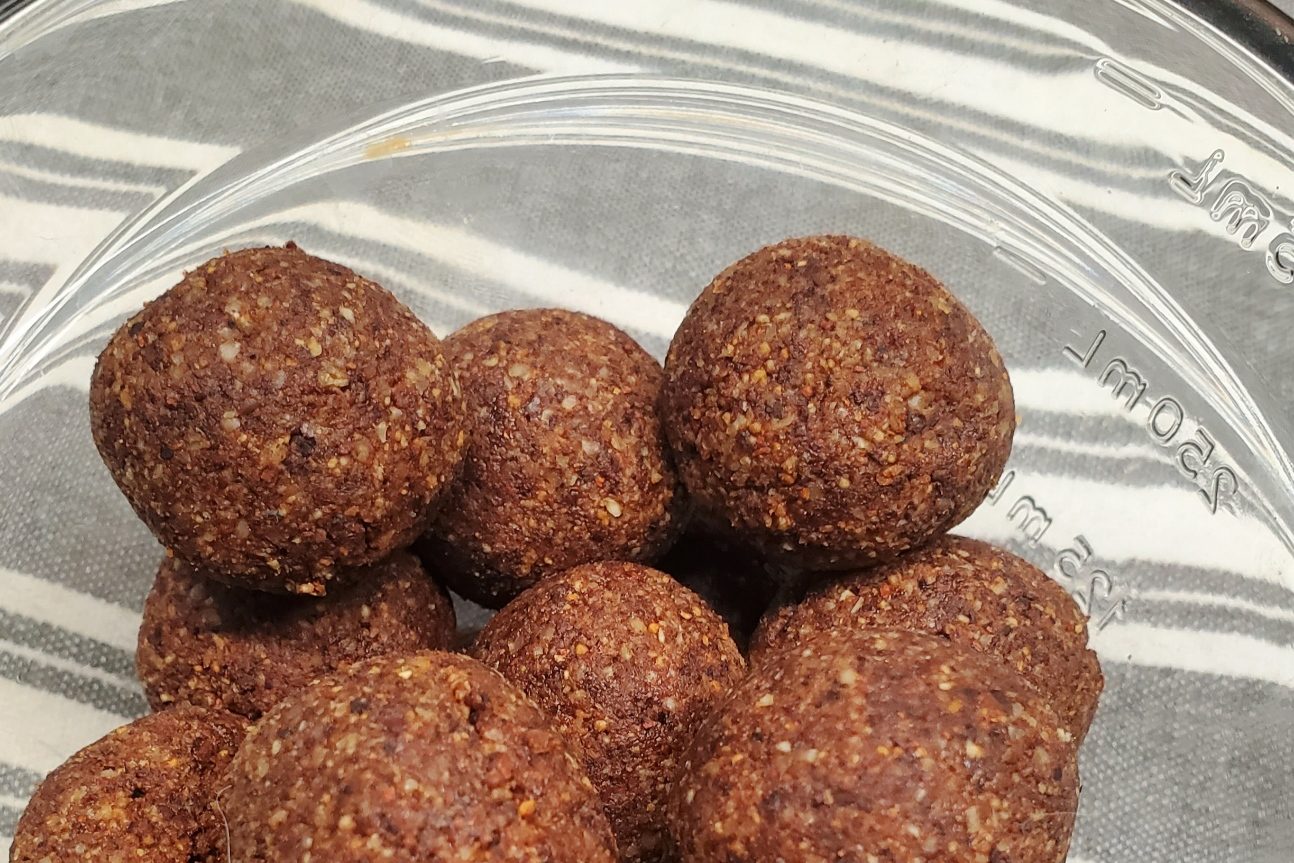 I mix in a little liquid at a time with my hands until it is a good consistency for rolling up. I can’t give you a measurement here because it depends on how dry your ingredients are. You will get a feel for it eventually.