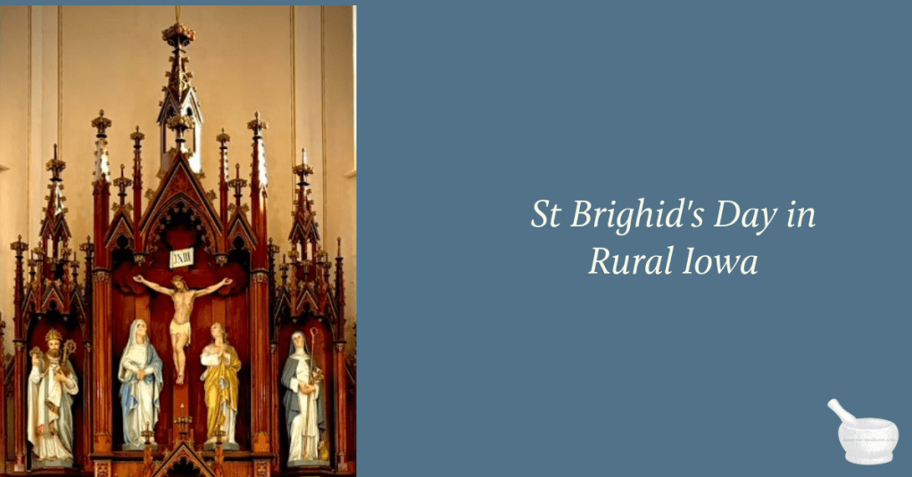 There are healing traditions associated with the feast day which could date back to the days when one of the sisters’ Brighid was a goddess who presided over medicine and healers. Or maybe they go back to the days when monastic communities provided most “professional” health care that happened outside the home in medieval times. Who is to say?