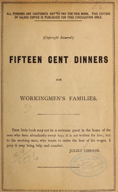 Corson, Juliet. The Cooking Manual of Practical Directions for Economical Every-Day Cookery. New York, Dodd, Mead & co, 1877.