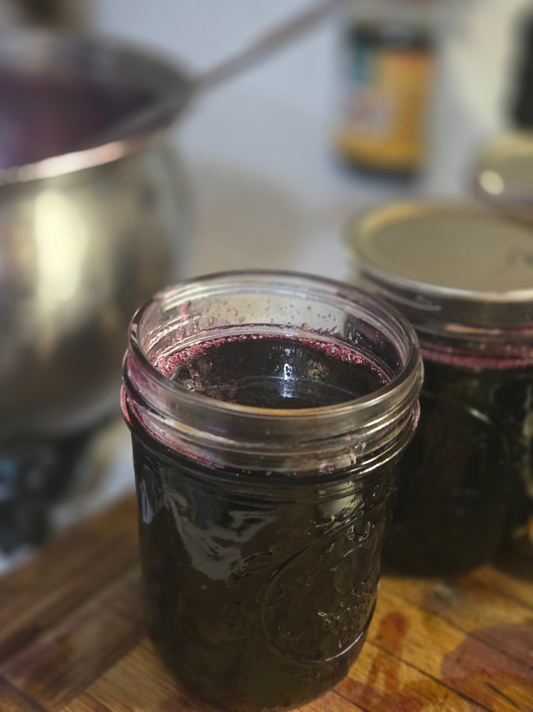8. Once you have to a consistency you like, ladle the jelly into sanitized jars. Don’t leave a lot of head space – 1/4 inch is sufficient.