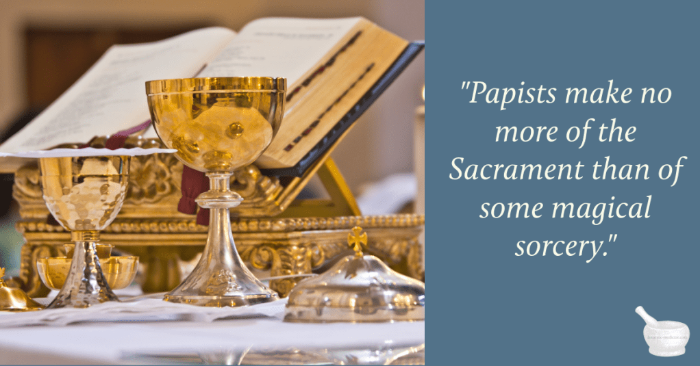 Catholic practices were too ritualistic for Protestant reformers who criticized the Catholic church for assimilating pagan practices. Gifford noted “Papists make no more of the Sacrament than of some magical sorcery.”11 (The term Papist was a derogatory label used primarily by Protestants in early modern England to refer to Roman Catholics.) Historian Ronald Hutton’s work points out that witchcraft accusations became a tool to root out practices Protestants associated with Catholic rituals or older folk traditions.